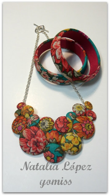 Este año se lleva de nuevo el estampado de leopardo, eso lo sé ( ya os he contado en otras ocasiones que mi lado salvaje no esta muy desarrollado, bueno sí, pero no en cuanto a estampados se refiere, vamos), pero se lleva combinado con estampados de flores??. Es que no lo sé, bueno y me importa bien poco, la verdad. Pero tenía un trozo de seda maravillosa y he hecho un conjunto de cartera, gargantilla y pulsera... maravilloso!! qué sí!!